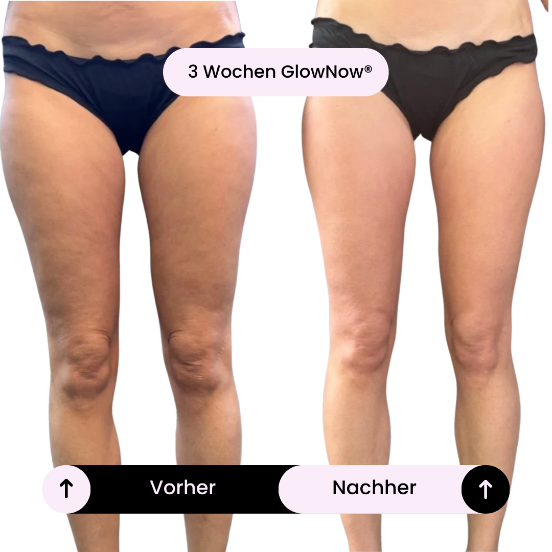 Nach 3 Wochen: Die Haut wirkt sichtbar glatter, und erste Dellen beginnen sich zu reduzieren. Du spürst eine angenehmere Spannkraft.